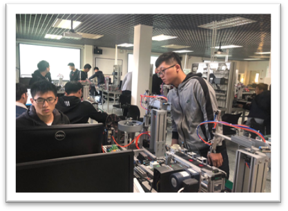 机电系拥有完备的实验教学平台,拥有yl23455永利官网-西门子工业自动化联合实验室,具备机电控制、机电一体化设计、自动生产线设计、智能工厂设计、机器人仿真、生产线工艺仿真、智能工厂仿真系统等全系列实践教学设备。员工们可以结合课程学习,在教师指导下进行科技创新实践,完成智能机器人、自动化生产线、智能工厂的设计与系统仿真。此外机电系研制的国内首台伺服电机驱动变应变率双向拉伸实验机,也成功应用于科研与教学。