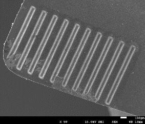 说明: 图5 YG8沟槽微织构刀具等效应力示意图
