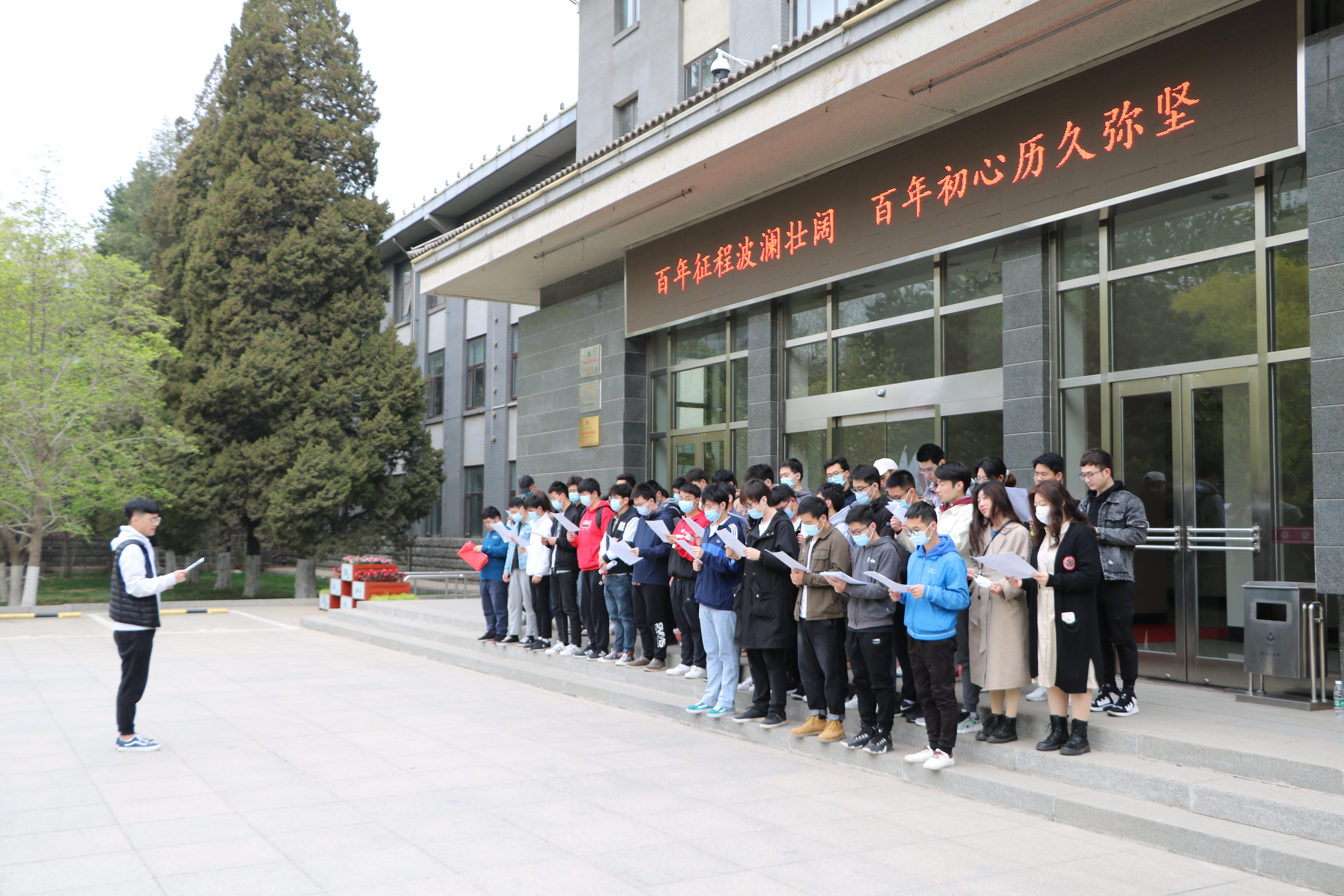 清晨,参加此次活动的全体党员和入党积极分子在敦品楼前集合,学习习近平总书记在党史学习教育动员大会上的讲话并重温入党誓词,随后全体党员和入党积极分子乘地铁前往中国国家博物馆。
