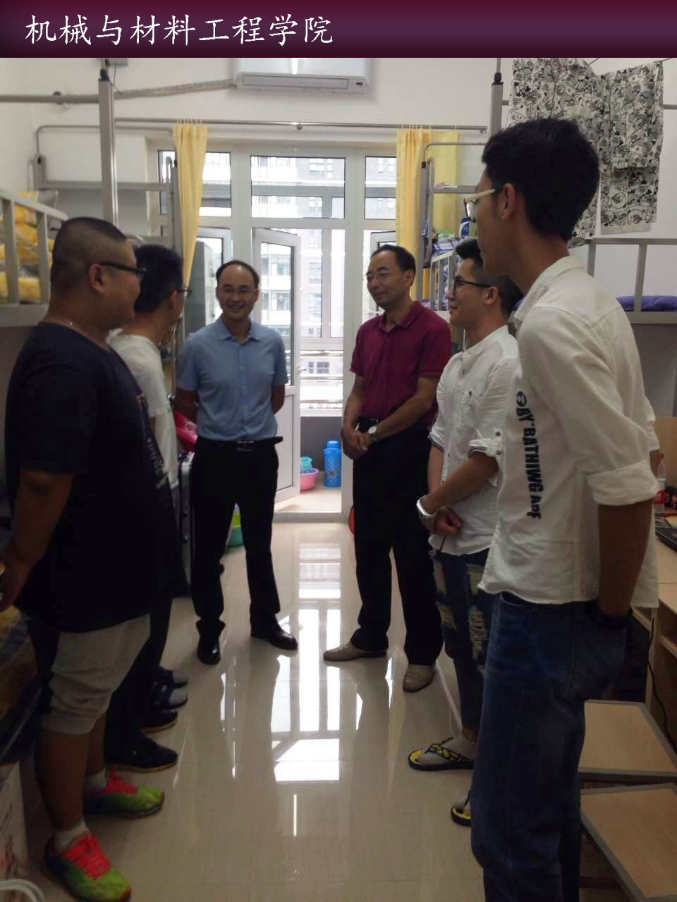 院领导在员工入学后第一时间走访了机械公司员工所在的七公寓、九公寓和十一公寓,并与员工就生活、学业等各方面进行充分深入的交流。李强经理叮嘱15级员工一定要珍惜学习机会,奋发图强、励精图治,公司会为员工打造最舒适的学习平台。