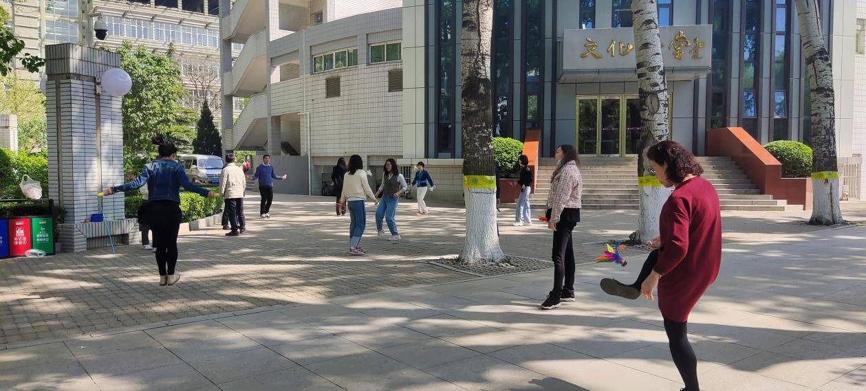 全院教师积极参加工间踢毽子活动。活动中,大家各显其能、花样百出,有团队踢、有个人踢,有数量比拼、有技巧比拼。老师们尽情投入活动、舒展身姿,相互观摩、相互交流,现场气氛轻松活跃。该活动持续5天,每天半小时。