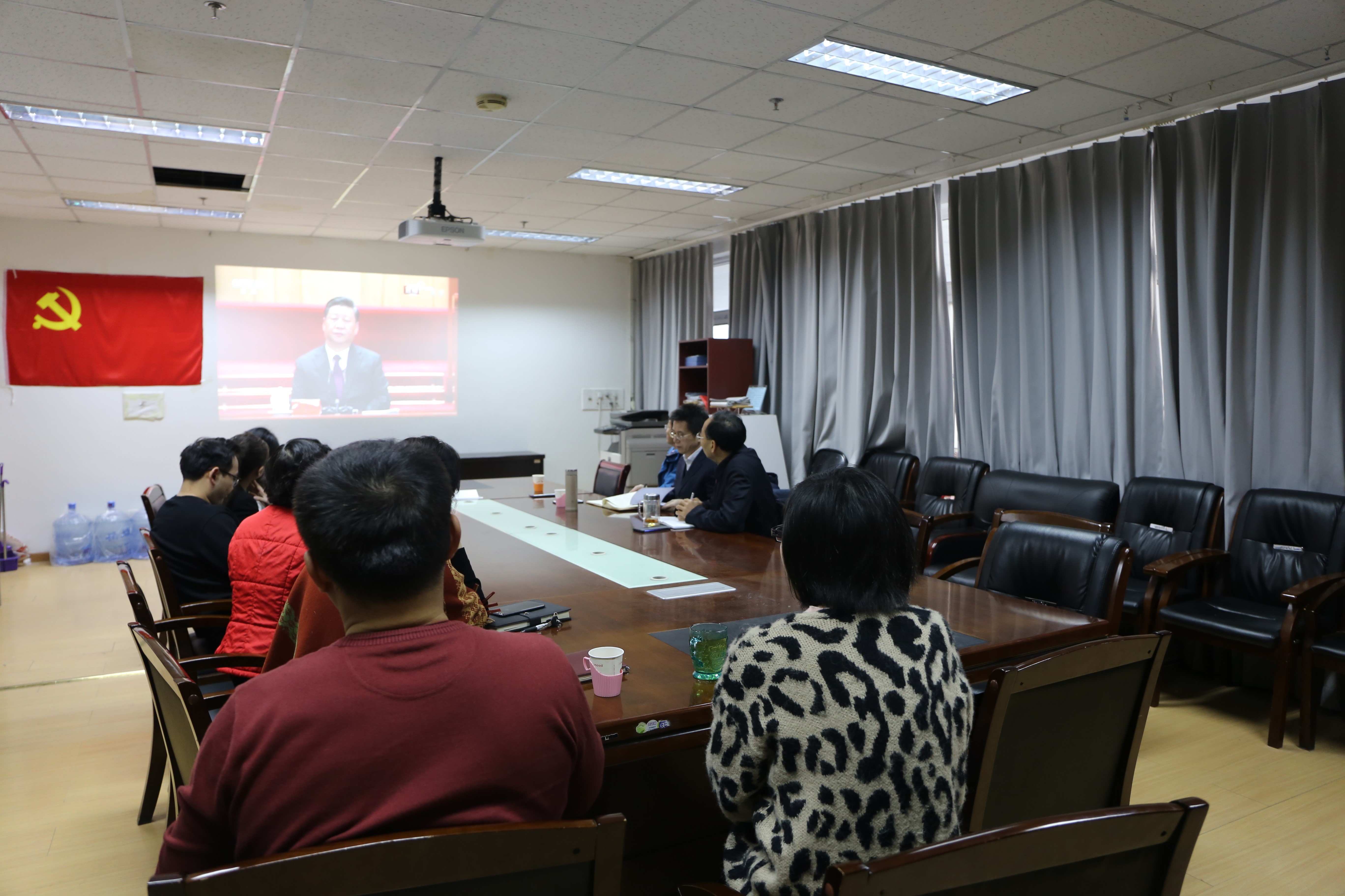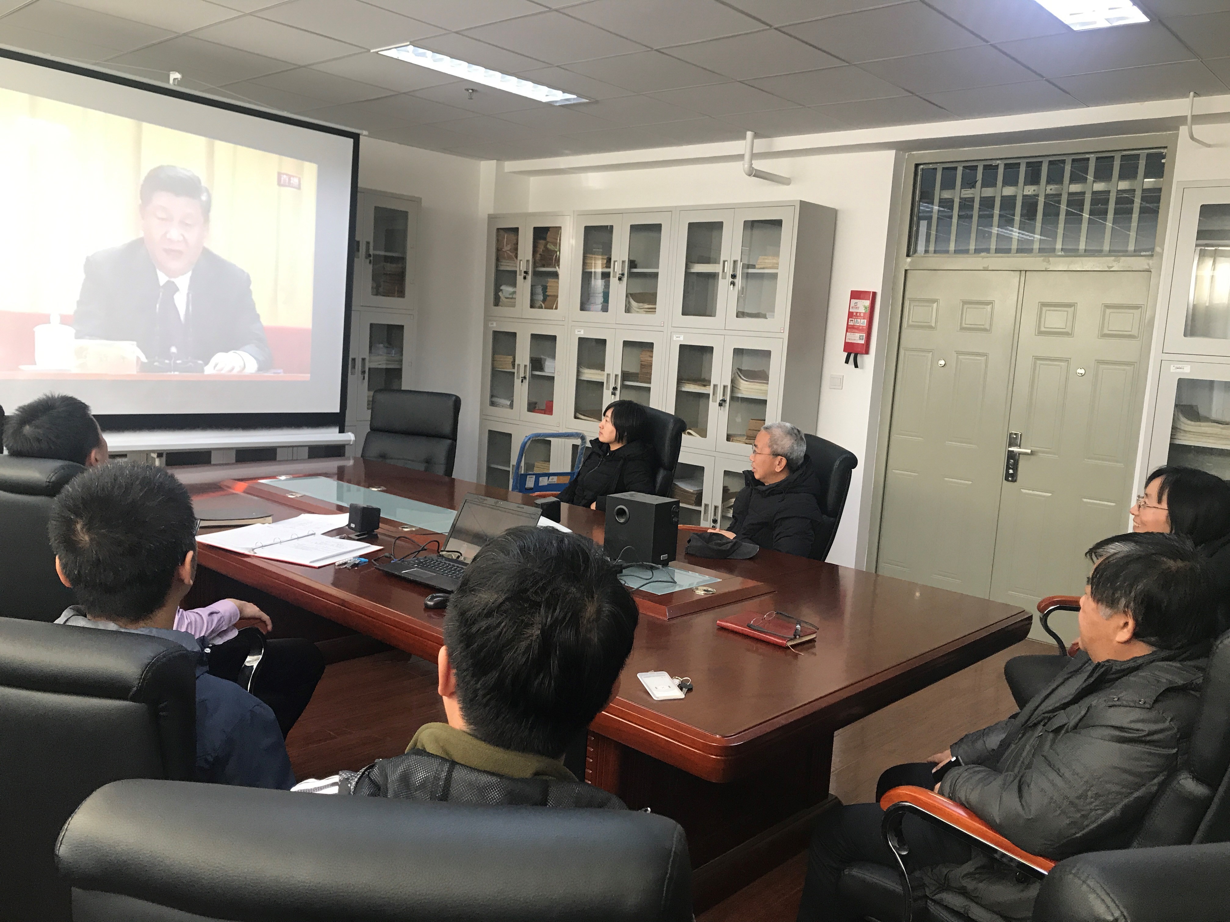 公司领导班子、办公室部门教师收看大会直播