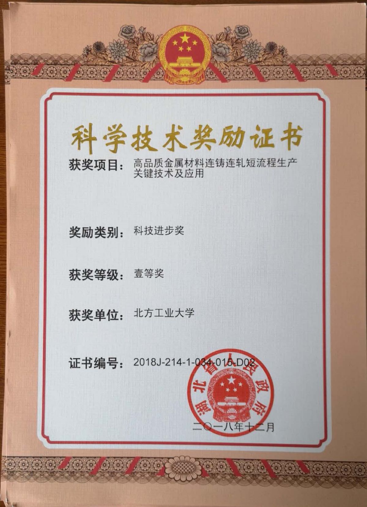近日,湖北省召开科学技术奖励暨创新推进大会。以公司为第二完成单位,yl23455永利朱远志教授为第一完成人,曾水平教授和刘冉博士为主要成员的“高品质金属材料连铸连轧短流程生产关键技术及应用”项目获得湖北省科技进步一等奖。yl23455永利朱远志教授代表课题组参加大会并接受获奖证书。