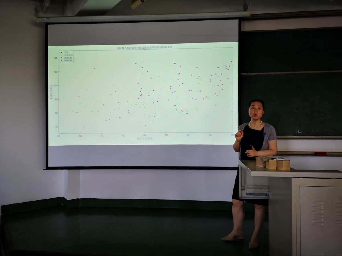 机械系主任刘瑛老师通过11-15级机械类研究生的考研大数据,对2019年的考研情况做了全面的总结。她从绩点与考研成绩、大英成绩与考研英语、大学数学与考研数学、专业课平均成绩与考研专业课成绩等四方面,用详实的数据进行分析,建议同学们要客观评价自己,合理填报志愿,提高考研成功率。“在复习时侯,专业课同样要重视起来,不要等到最后复习。”刘瑛老师这样说,“此外,专业课分数和数学分数是决定总分的首要因素”。同时,刘老师点明了绩点与考研成绩的关系,列举了绩点区间和与之对应的报考院校,通过总结多年来的规律性问题,阐明了考取理想院校的员工所需要具备的条件。刘瑛老师特别强调,绩点所反映的不仅仅是一个人的成绩好坏,更是他学习态度、习惯、方法和毅力的体现。最后,刘瑛老师希望16级考研同学客观评价自我,重视指导老师的意见,建议同学们建立学习小组,互帮互助,互相督促,劳逸结合,确保身心健康。