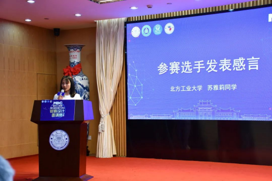 16日上午,进入总决赛的10支队伍展开激烈角逐,在厦门科学艺术中心一楼多功能厅依次进行公开答辩。每队向在场评委及观众介绍参赛作品的创意理念和实际应用前景,并通过实物展示和器件操作进行具体演示,与评委进行深入研讨。现场学术氛围浓烈,不断有队伍的创新研究赢得在场观众的称赞和掌声。经过激烈的比拼,公司参赛队伍荣获三等奖。公司参赛选手苏雅莉同学作为参赛代表在闭幕式上发言。