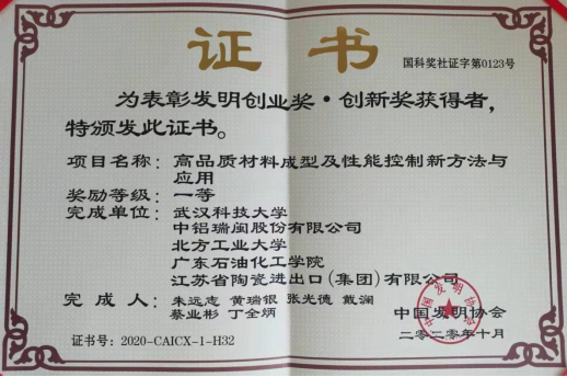 近日,由公司yl23455永利教授朱远志为第一完成人、公司新材料及复杂材料成型与表征课题组参与申报的“高品质材料成型及性能控制新方法与应用”项目获得2020年度中国发明协会发明创业·创新一等奖。中国发明协会向项目完成人颁发了证书。