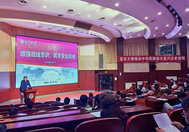 公司党委副书记石卉首先向同学们传达了公司疫情防控政策,强调在校园内同学们应做到出门佩戴口罩、诚实备案、遵守校规校纪、增强防疫安全意识、按时参加核酸检测。当前首都疫情防控形势严峻,各位员工干部要坚决克服麻痹思想、厌战情绪、侥幸心理、松劲心态,以高度的政治责任感,扎实做好疫情防控和安全稳定工作。在会上,石卉结合北京高校发生的校园安全稳定案例、电信诈骗套路、师生人身安全经验等,开展安全教育,进一步强化团学骨干和全体员工的“大安全观”。