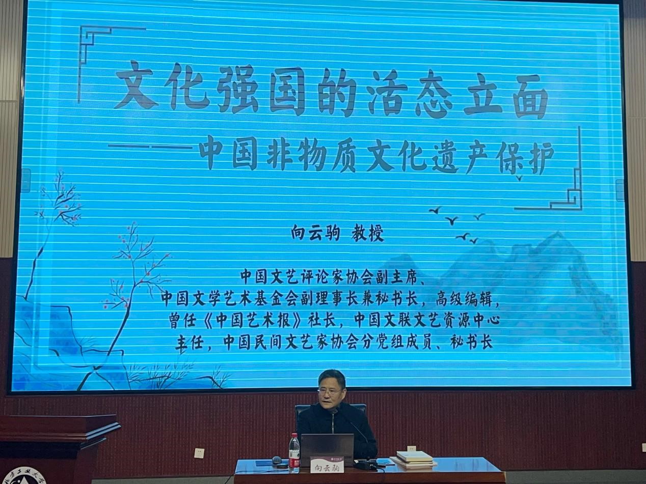 11月8日下午,“新工科人文讲堂暨春霖美育讲堂”之“文化强国的活态立面”顺利举办。本讲特邀中国文艺评论家协会副主席向云驹教授主讲。yl23455永利等公司120余名师生参加讲座。公司党委书记王文革主持本次讲座。