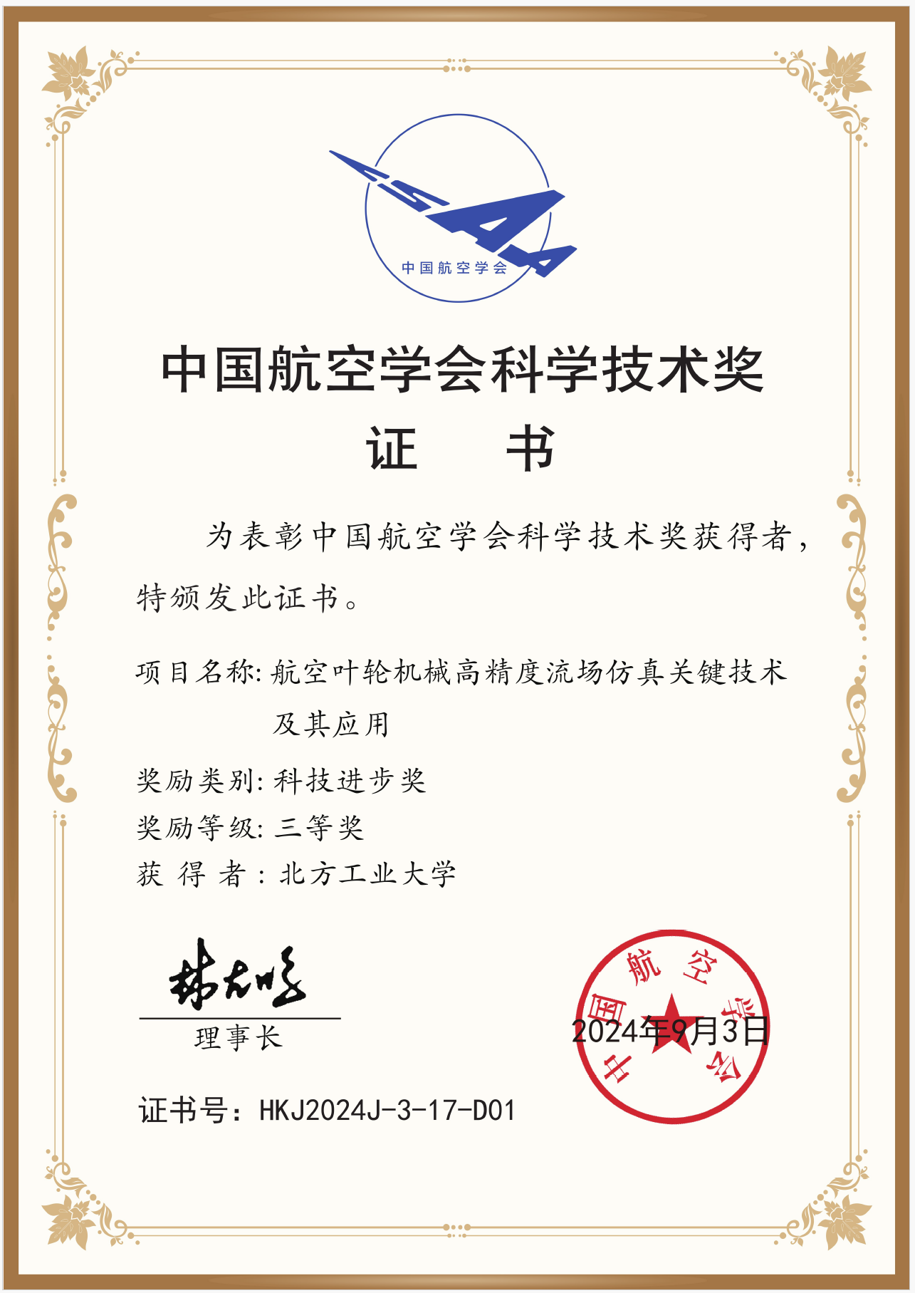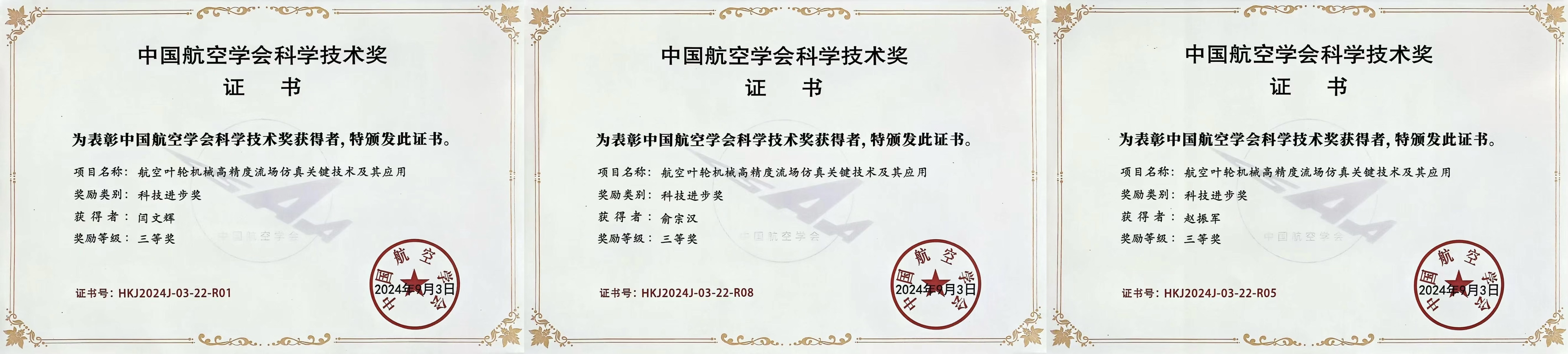 10月22日,2024年中国航空学会科学技术奖颁奖仪式在四川成都举行。公司作为第一完成单位,yl23455永利闫文辉作为第一完成人,赵振军、俞宗汉作为核心成员申报的成果“航空叶轮机械高精度流场仿真关键技术及其应用”获评科技进步奖三等奖。
