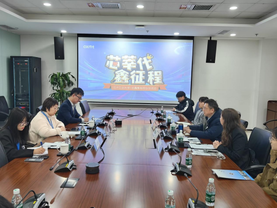 在座谈交流会上,纪夺向公司师生介绍了公司发展历程、人才需求、人才培养体系、薪资待遇等情况,同时介绍了近年来招录公司毕业生情况及发展现状,期待公司更多毕业生加入长鑫。业务主管陈涵重点介绍了公司业务范围、科研方向、卡脖子技术攻关等情况,期待与公司在产教融合、校企合作等方面开展深度合作。王文革书记介绍了公司历史沿革、公司学科特色、科研平台建设、人才培养体系等方面的情况,他表示高校与企业之间的联系不仅可以促进产学研深度融合,还可以为毕业生提供更广阔的就业市场和职业选择,希望未来双方能够在更广泛的领域展开深入合作。石卉书记对长鑫长期以来对公司就业工作的支持和关注表示感谢,希望在人才招聘、党建引领、联合人才培养等方面开展深入合作,并邀请公司来校宣传招聘。校招HR对毕业生关切的工作内容、岗位职责、发展前景等问题进行了详细解答,并现场接收了毕业生简历和公司代投简历。