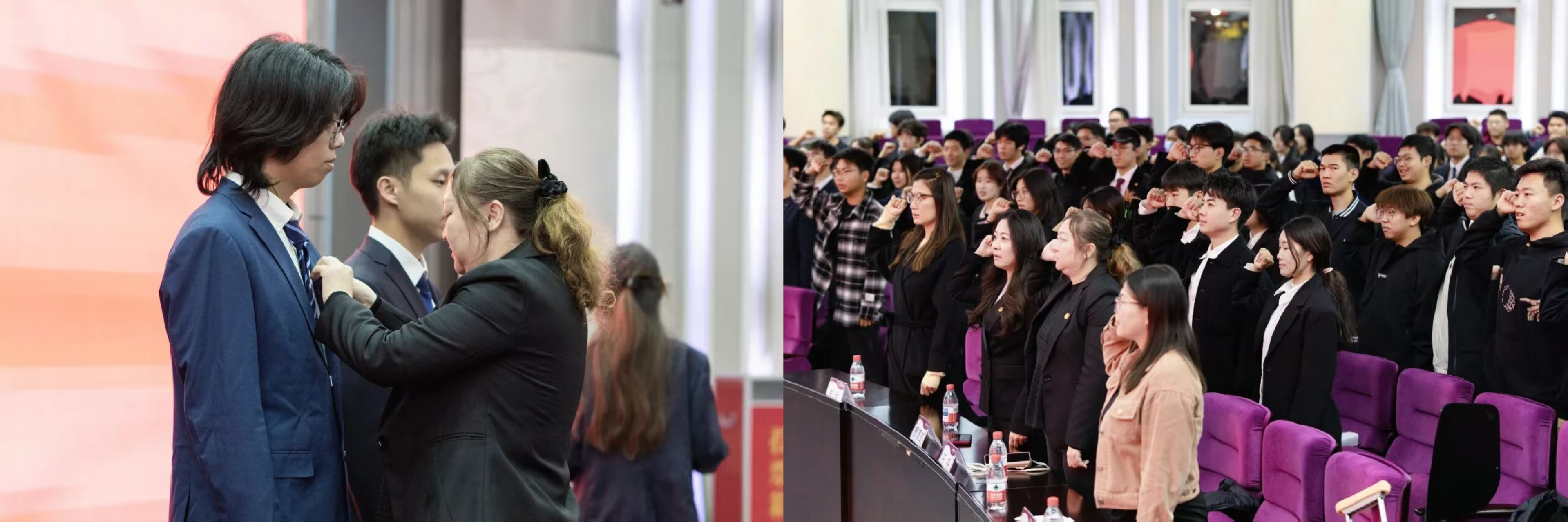 公司党委副书记石卉为本年度新发展团员代表颁发了团章和团徽,院团委副书记刘佳怡带领全体新老团员重温了入团誓词。
